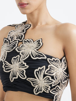 No overproduction, minimal cutting waste, reusable fabrics for appliqué, and garments designed to be re-worn in multiple forms.