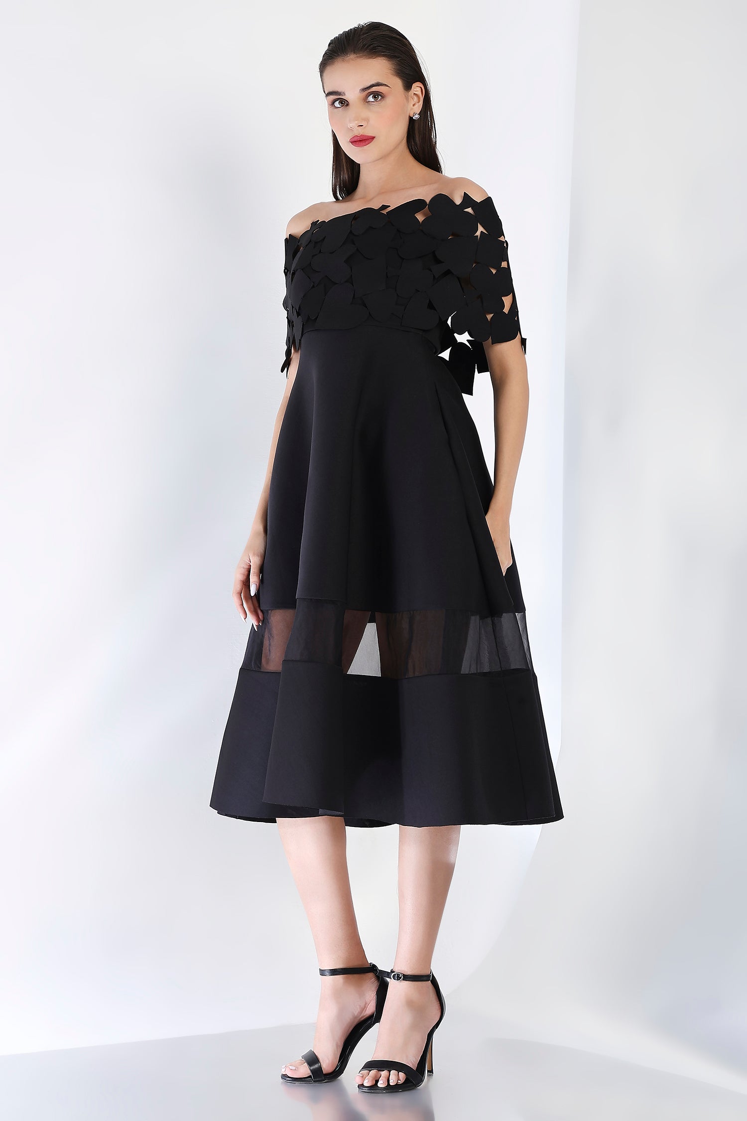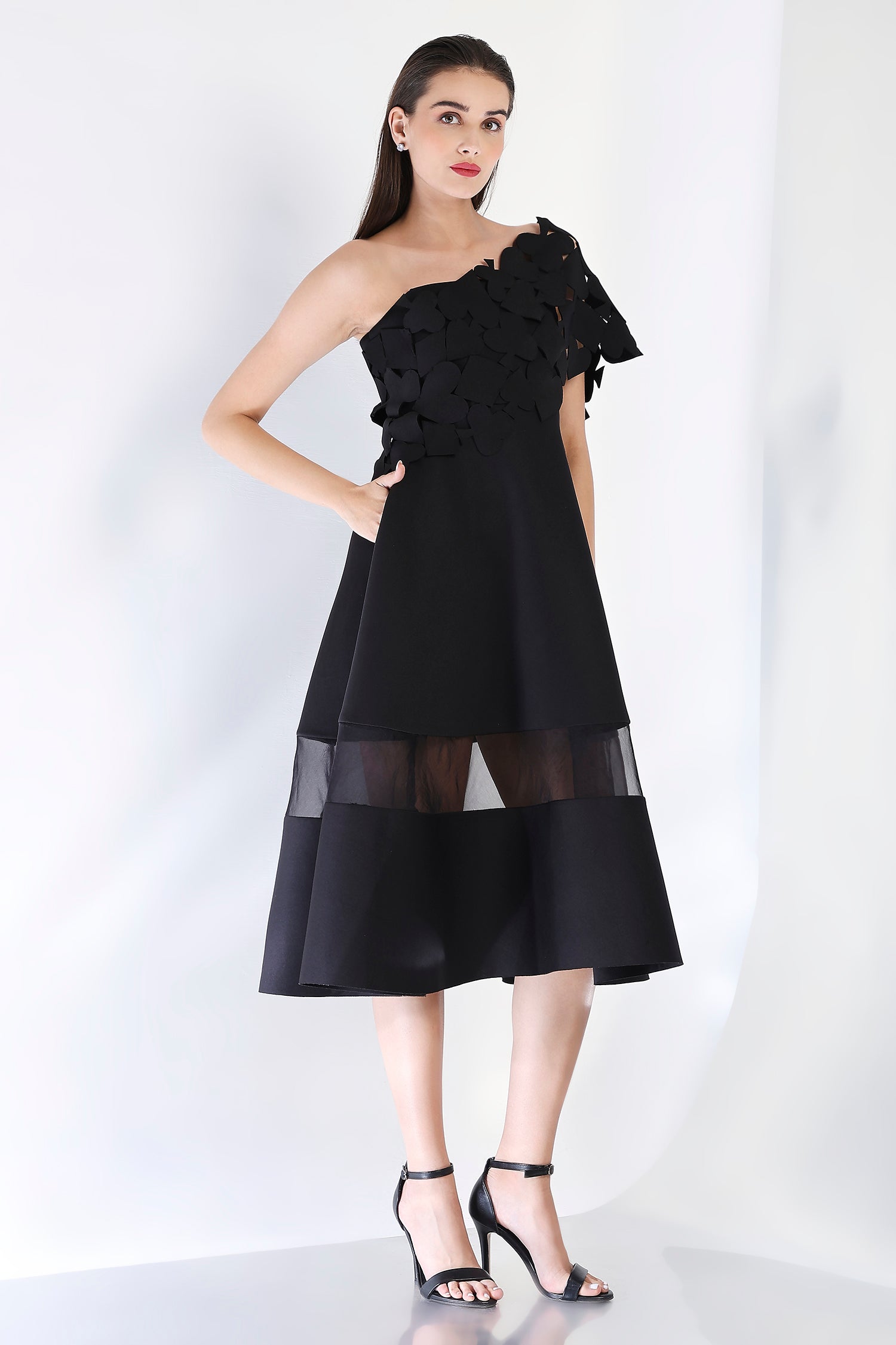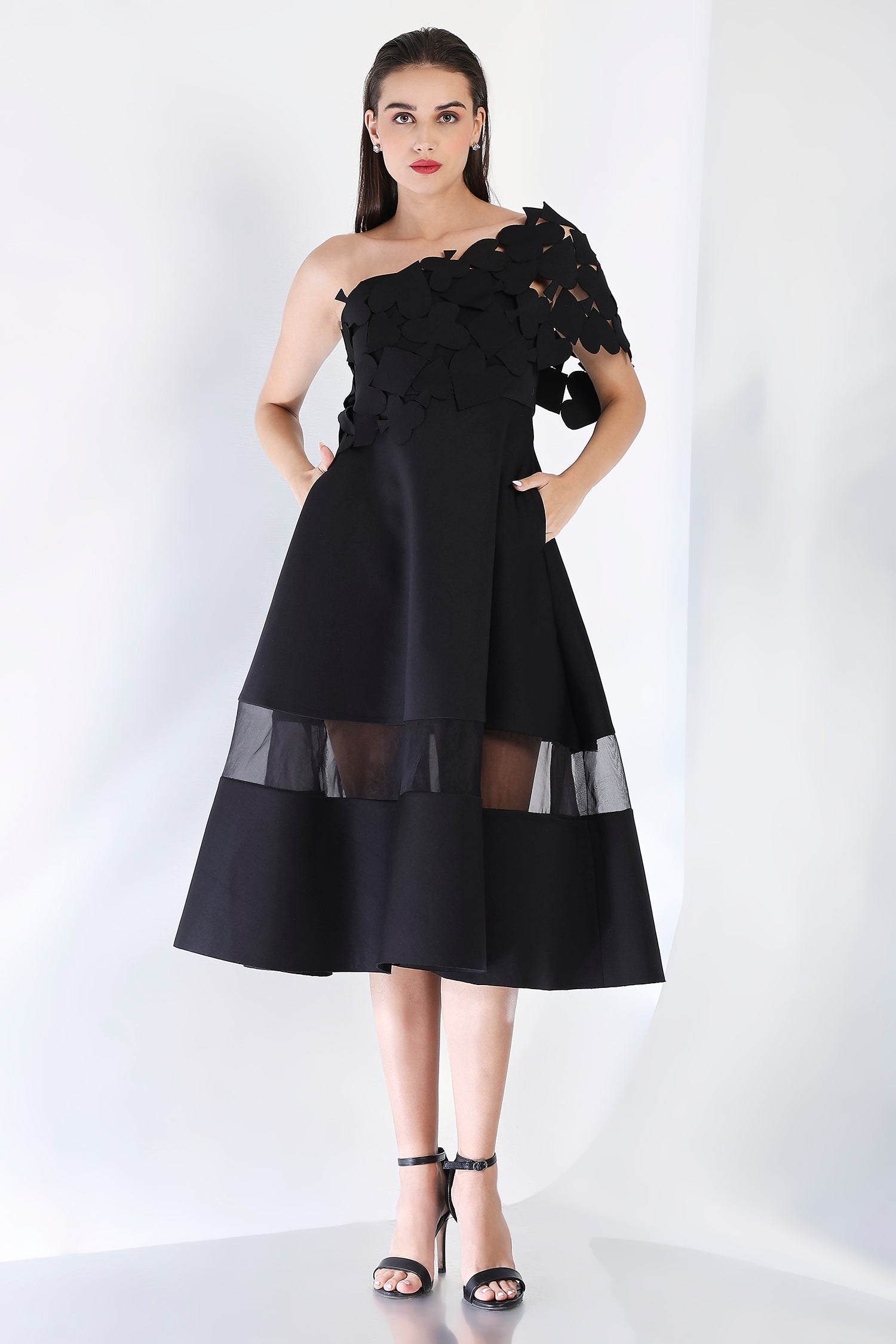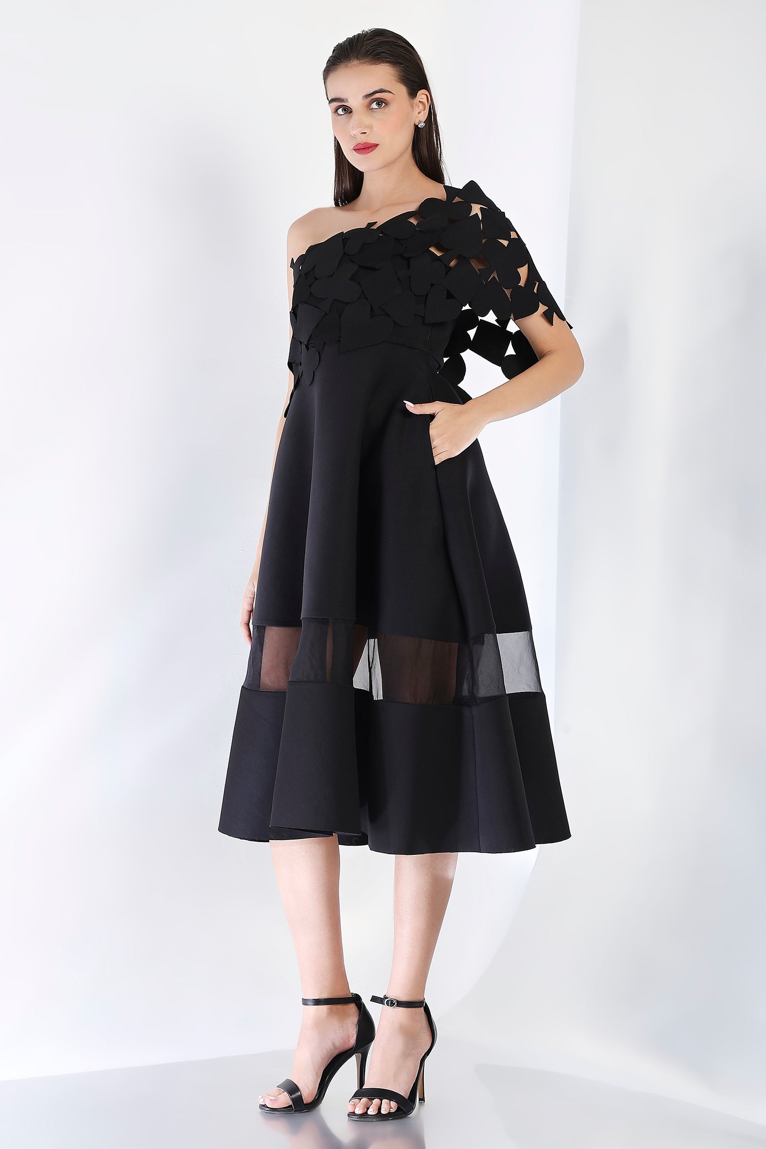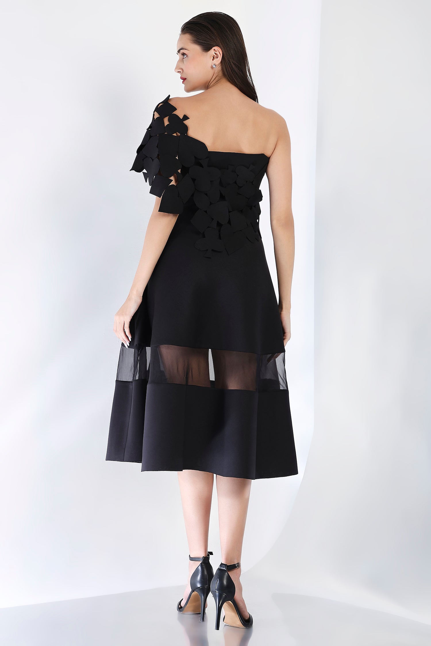 Featuring a strapless, fit and flare dress Alanna which is custom made for you, as per your height and unique measurements. The sheer panel in the base dress gives an alluring look to this classic silhouette.