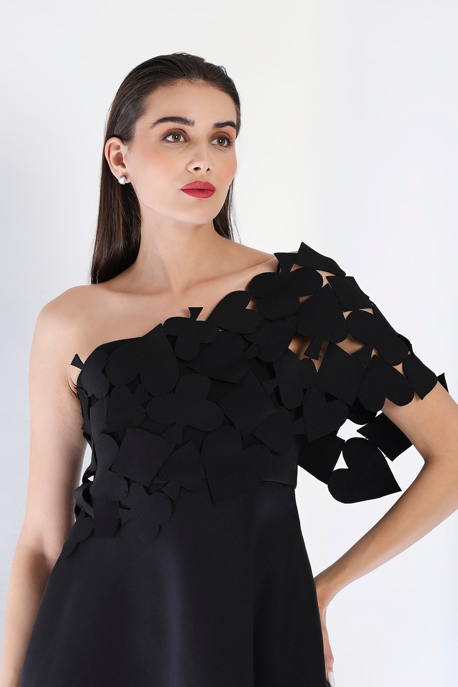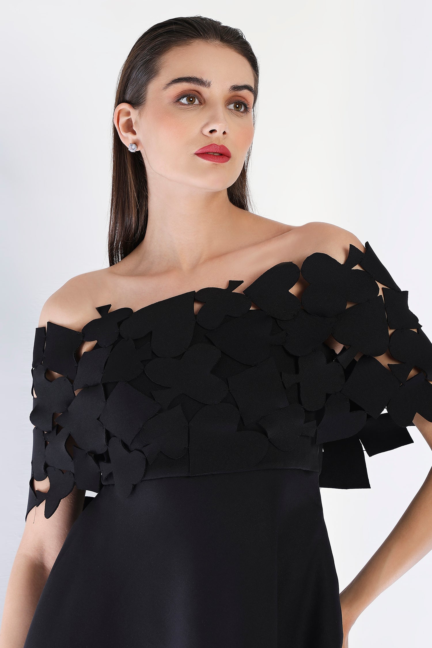 Wear it in two ways- standalone or paired with the wrap. The cutwork wrap comprises of small cutouts of all four suits, stitched together to give a multidimensional look. The wrap can be styled off-shoulder or over one shoulder as depicted.