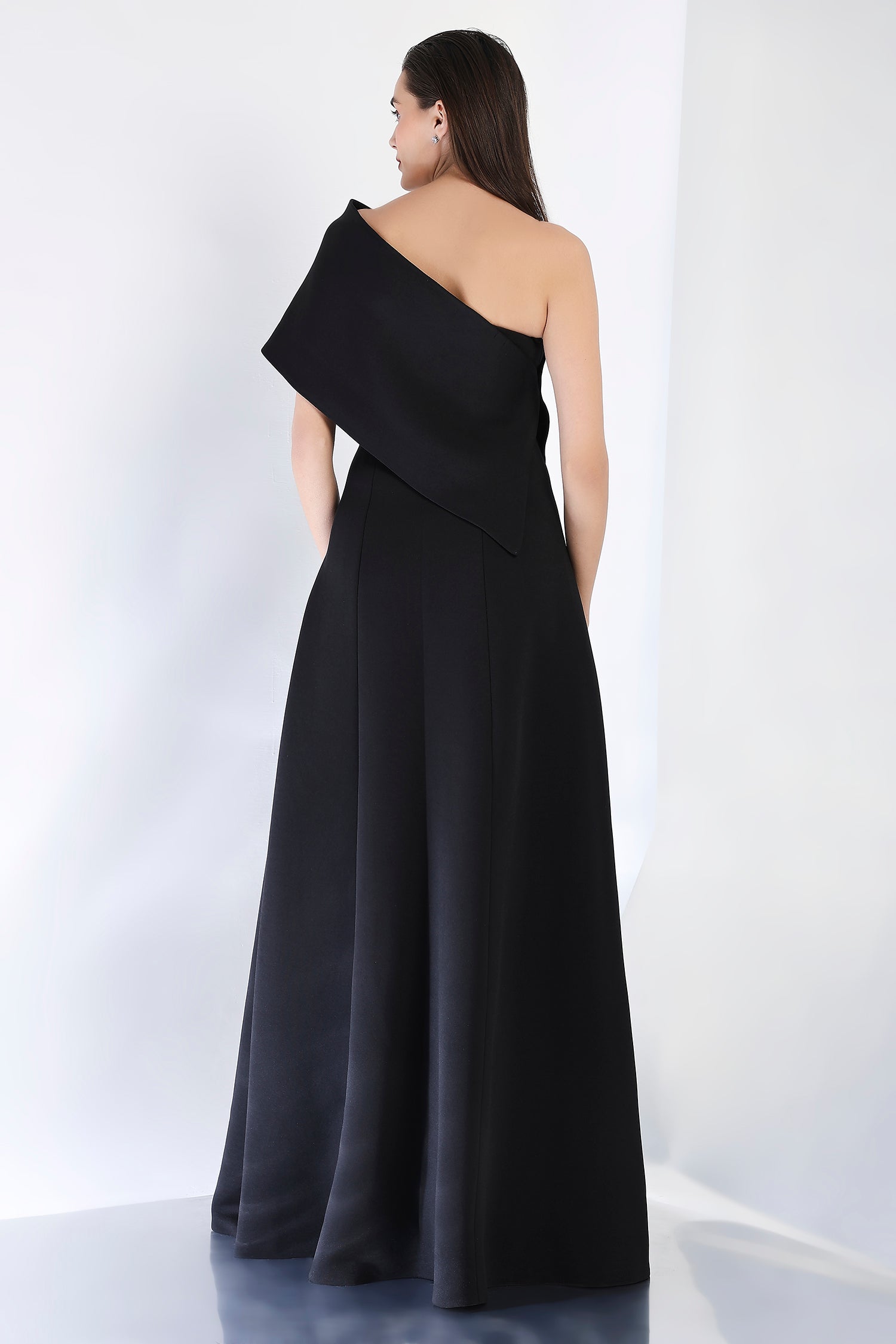 A striking fusion of structure and fluidity, this strapless panel dress with a front slit maxi design exudes sophistication. The classic wrap, which can be styled as one-shoulder or off-shoulder, adds a touch of versatility to the look, making this ensemble ideal for upscale occasions where grace and elegance are essential.
