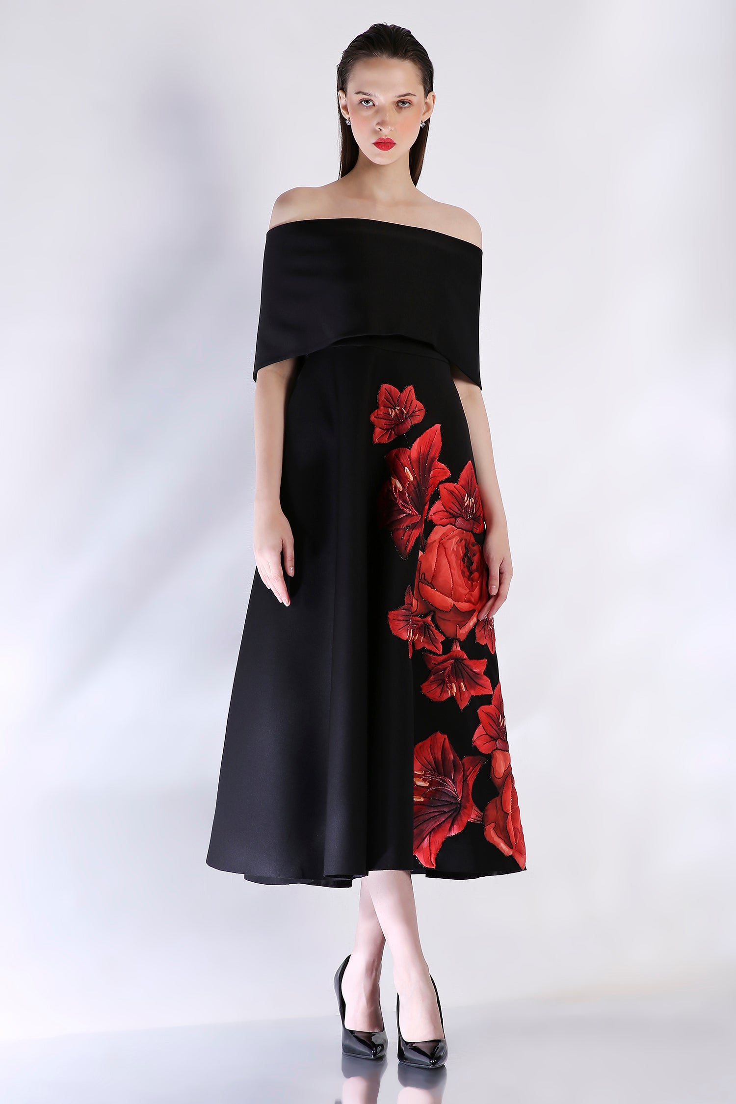 Crafted in premium neoprene, the dress offers a beautiful balance of structure and ease — holding its shape while ensuring comfort throughout wear.