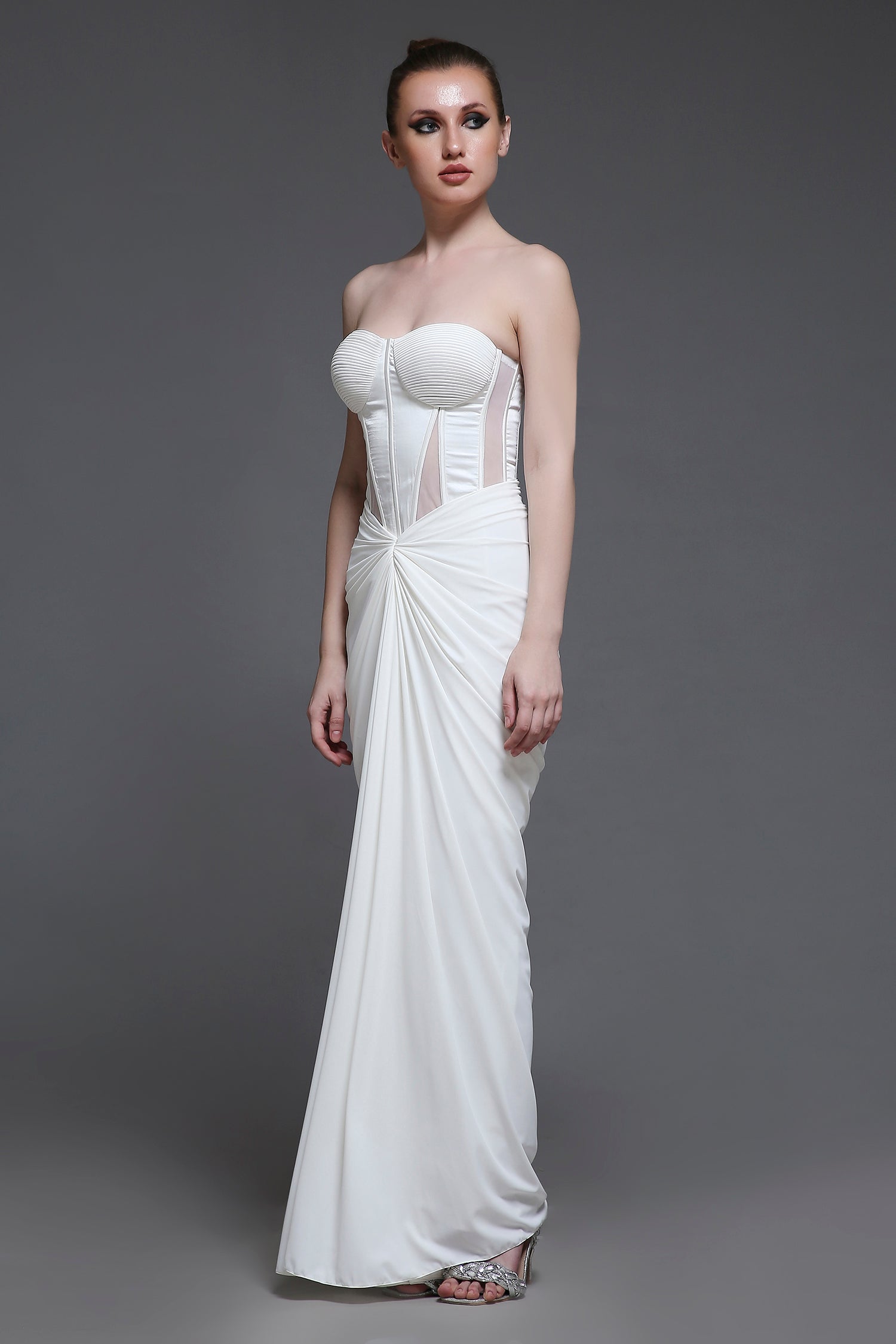Our Georgia Set combines elegance and structure with a corset featuring detailed cups, mesh panels, and a tie-up back for a customizable fit. The matching fitted draped skirt is enhanced with subtle ruching for added texture, creating a flattering and sophisticated look. Perfect for any special occasion.