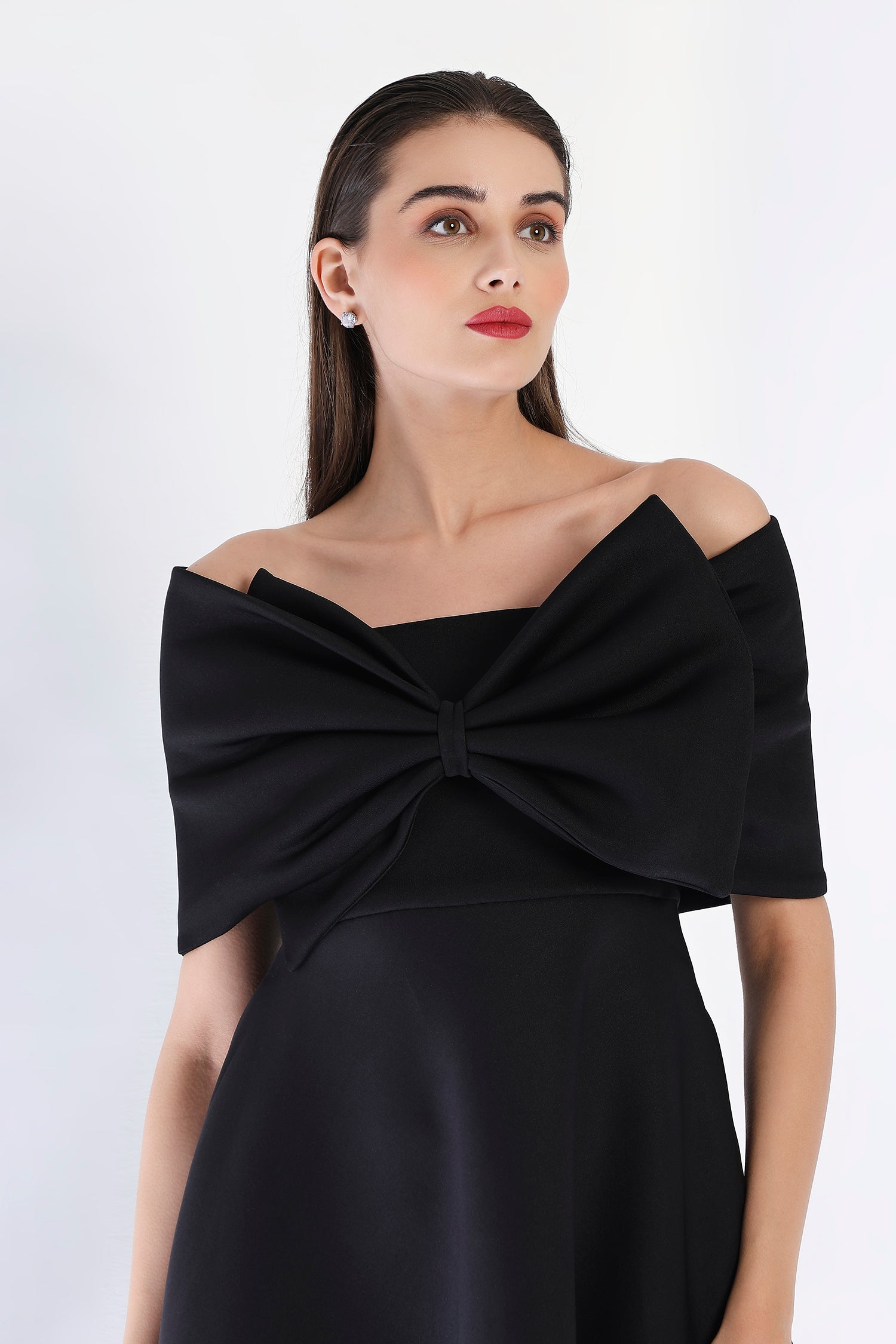 Pair it with the detachable bow wrap to amp it up further. The wrap can be styled off-shoulder or over one shoulder.