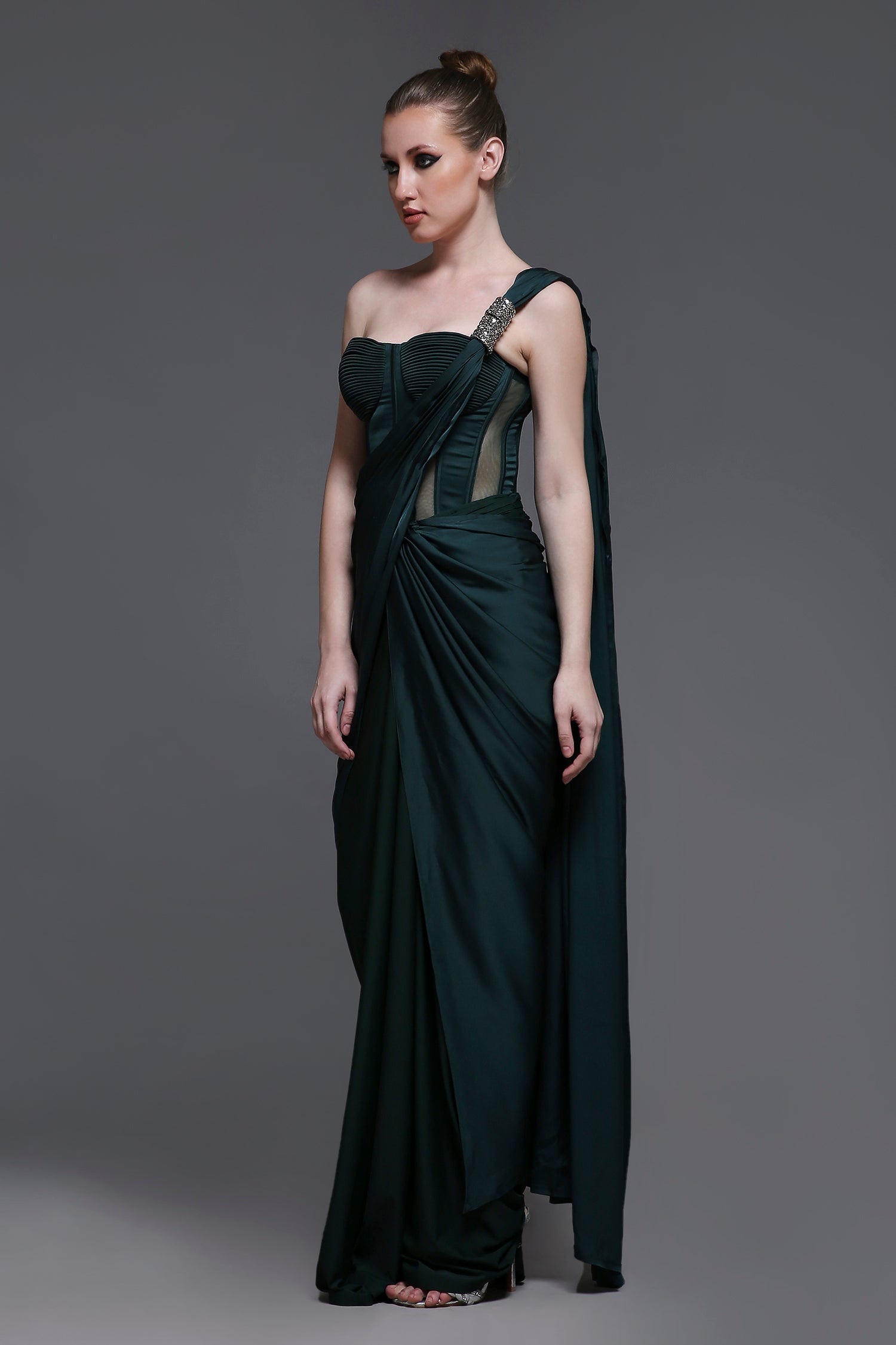 Our Georgia Set combines elegance and structure, featuring a corset with detailed cups, mesh panels, and a tie-up back for a customizable fit. The matching fitted draped skirt is enhanced with subtle ruching for a flattering silhouette. The set is further elevated by a detachable drape with intricate embroidered detailing, adding a touch of luxury and sophistication. Perfect for making a statement at any special occasion.