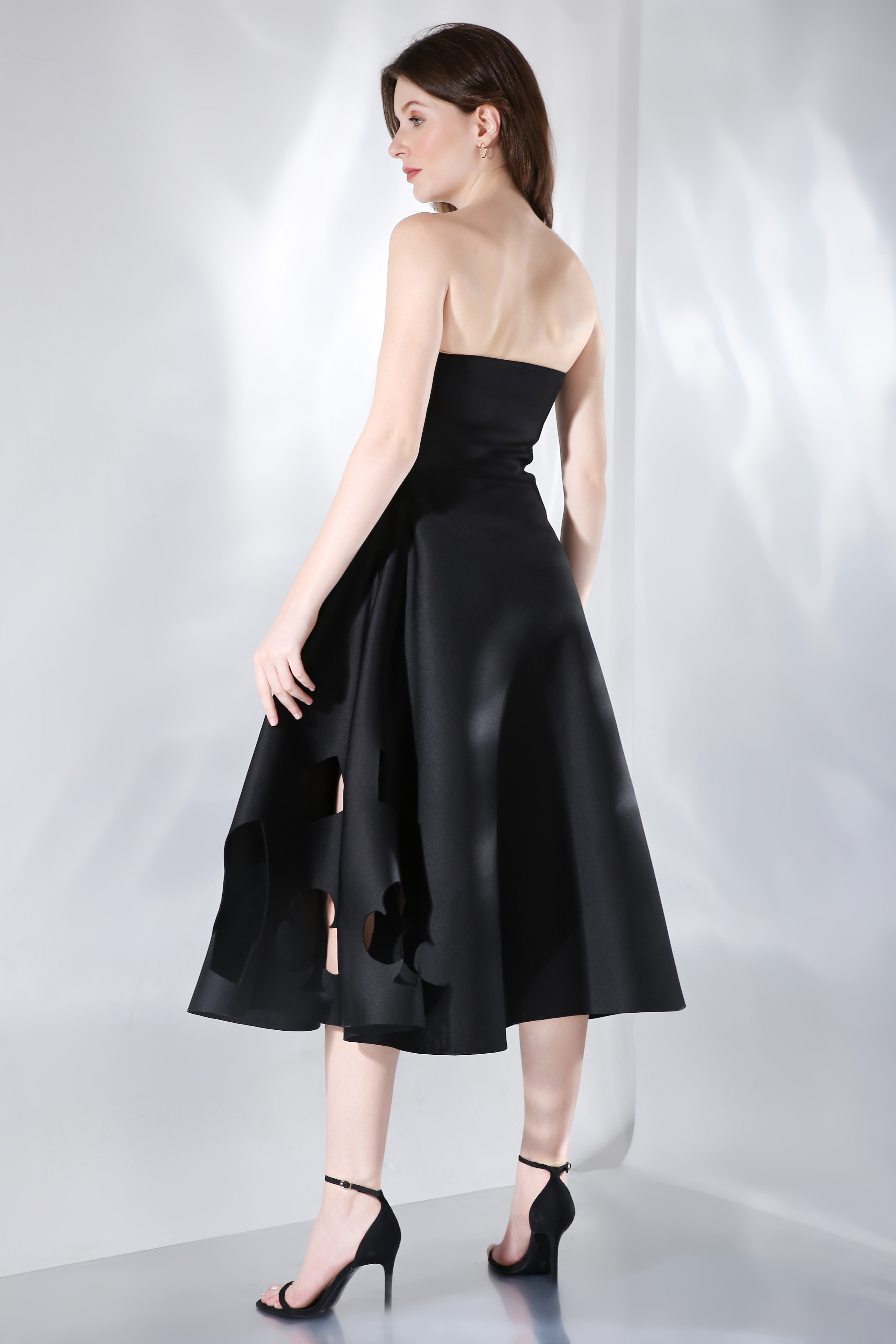 This is a made-to-measure product and you can also specify the exact length of the dress for an optimal look.