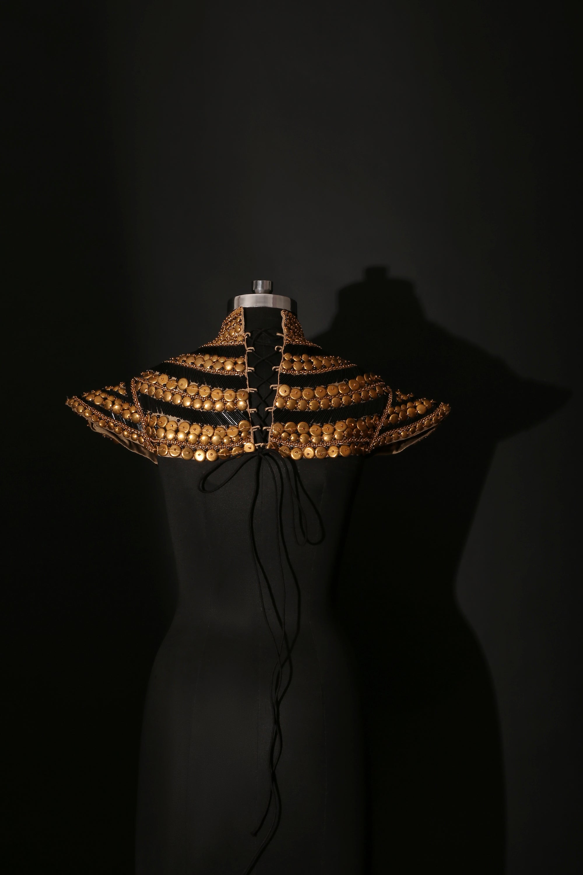 A statement detachable overlay, hand-embellished with layered metallic elements and intricate detailing, designed to blur the line between western and Indian styling. Sculpted to sit gracefully on the shoulders and neckline, it pairs effortlessly with Ozeqo’s lycra sets for a bold contemporary look or can be styled over a lehenga or draped skirt to add regal drama. Versatile and striking, this overlay transforms minimal bases into elevated ensembles, allowing you to style it your way—modern, festive, or fusion.