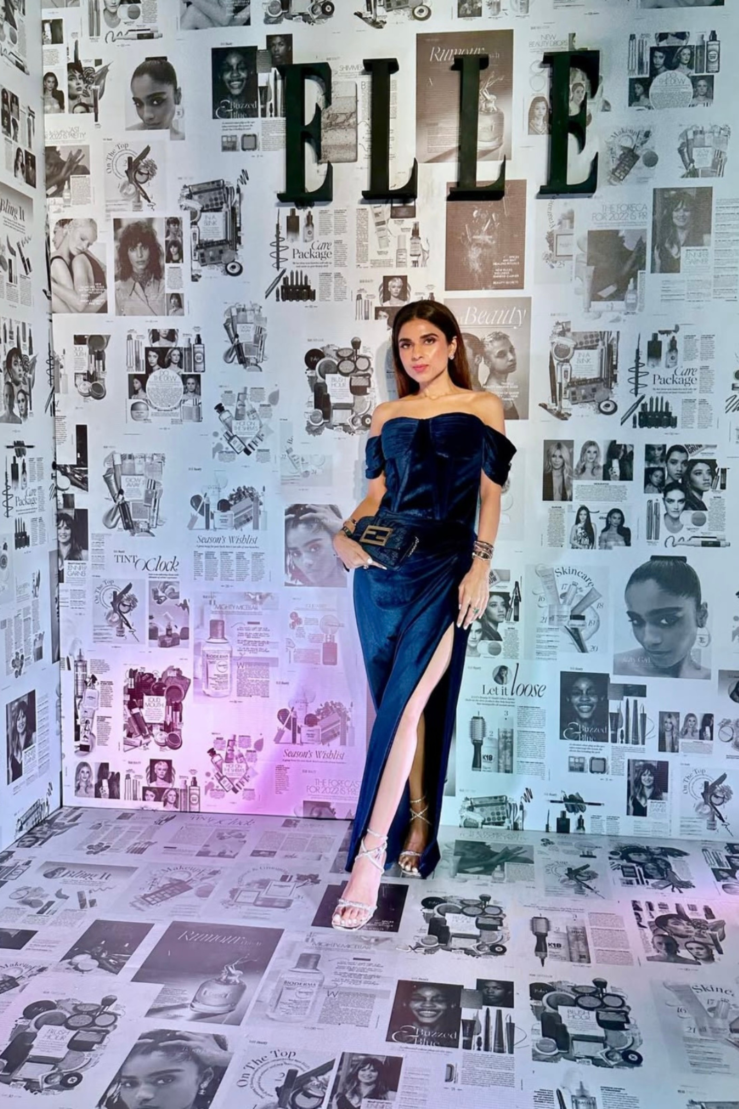 As spotted on Ishna, featuring a velvet corset gown with hand stitched detailing of pleats and drapes.