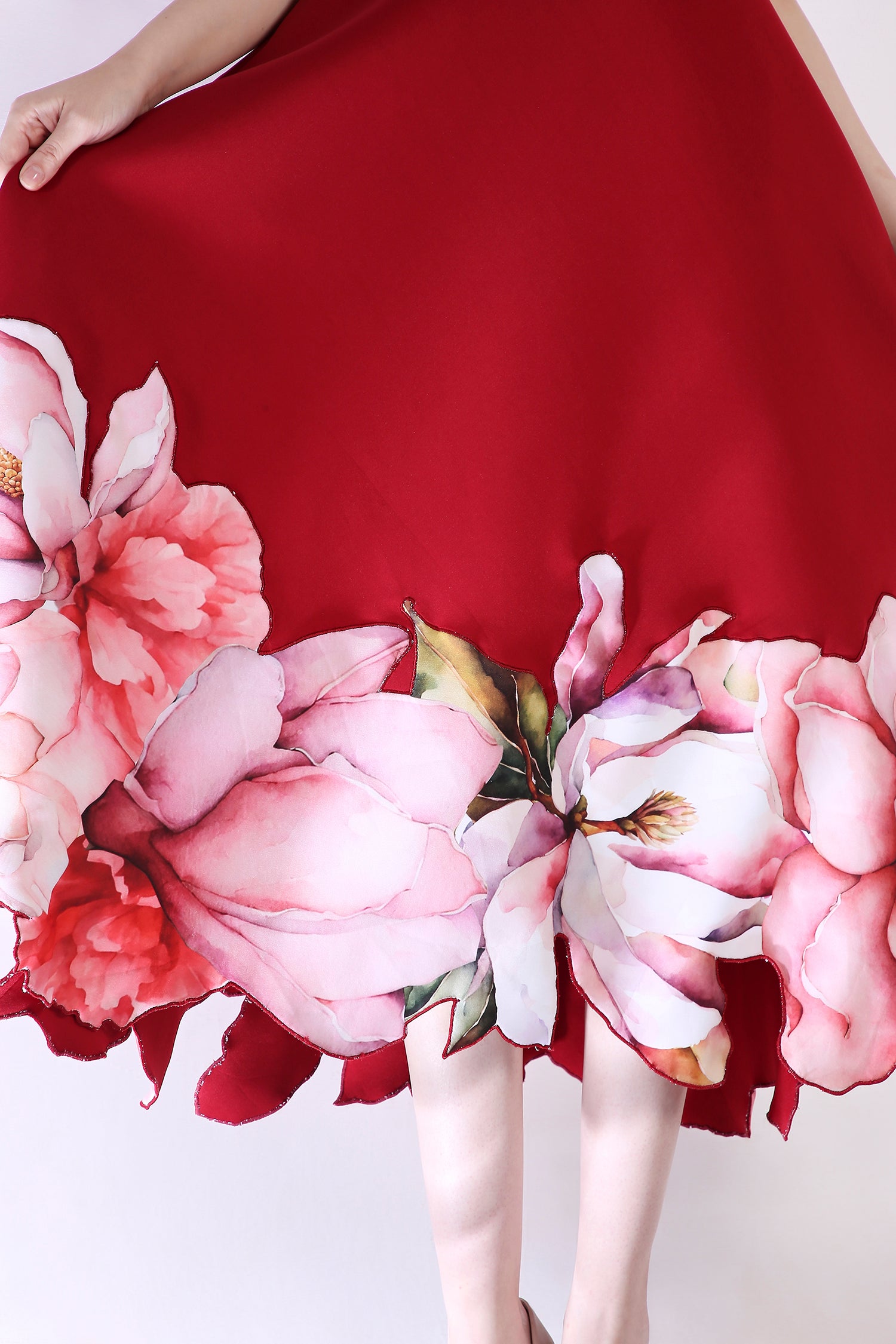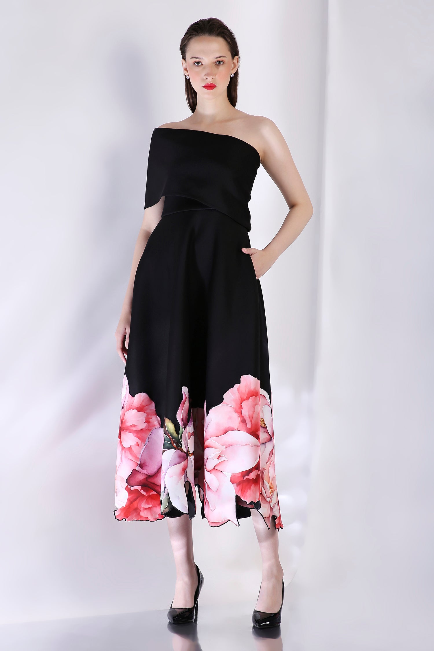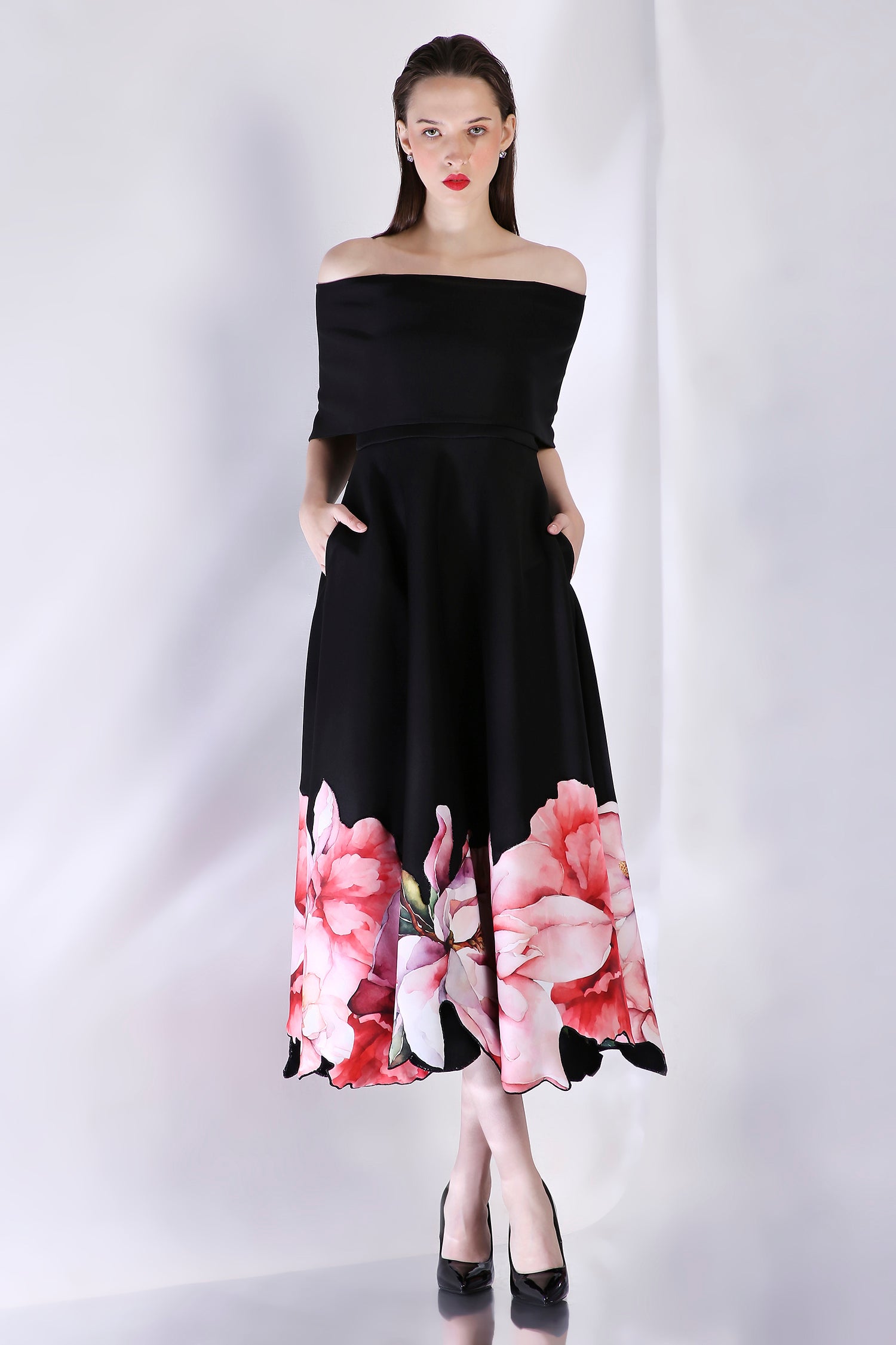 Featuring a fit and flare dress, Juliette. The dress comes with pockets and embroidered floral appliqué detailing
