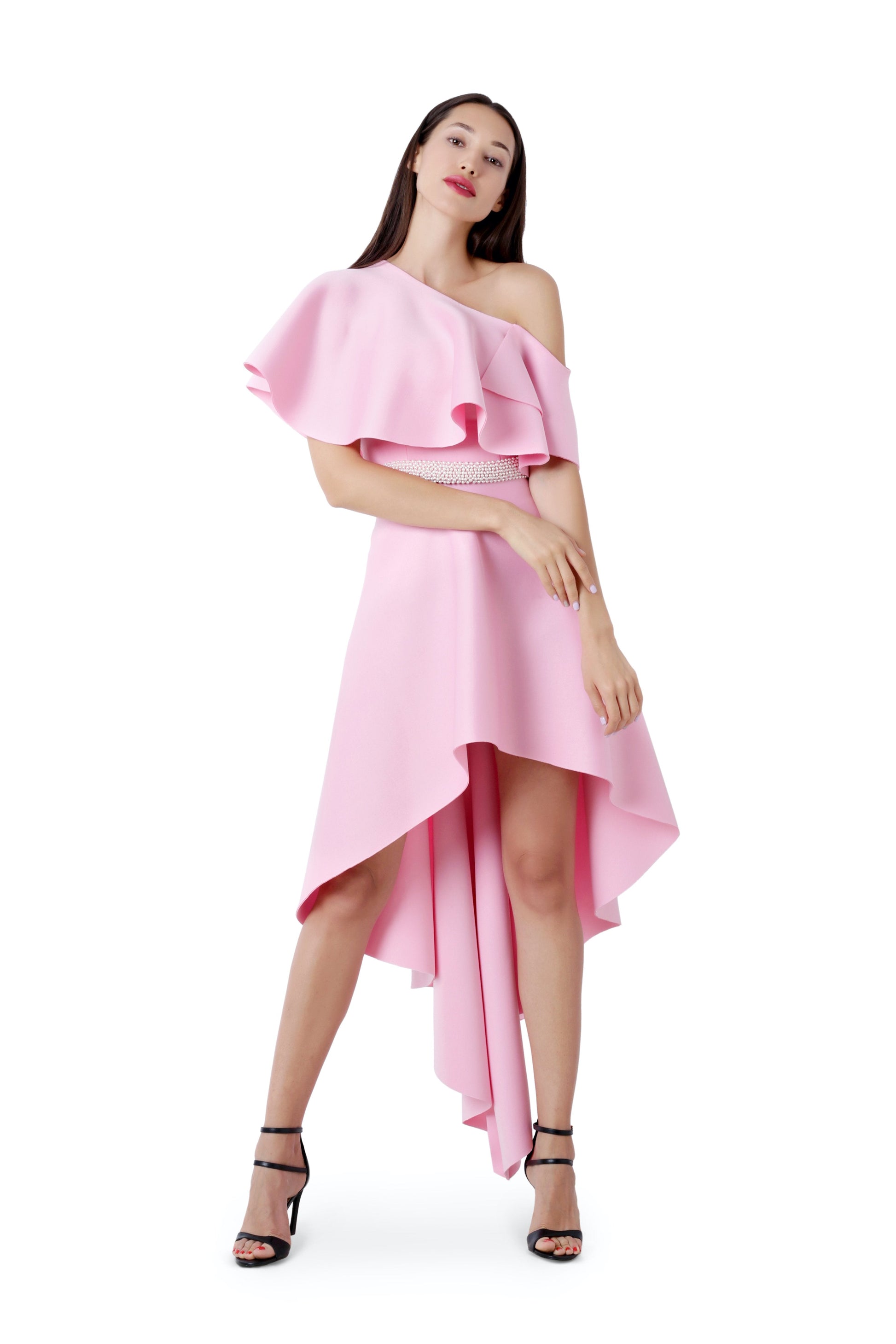 One shoulder soft ruffles