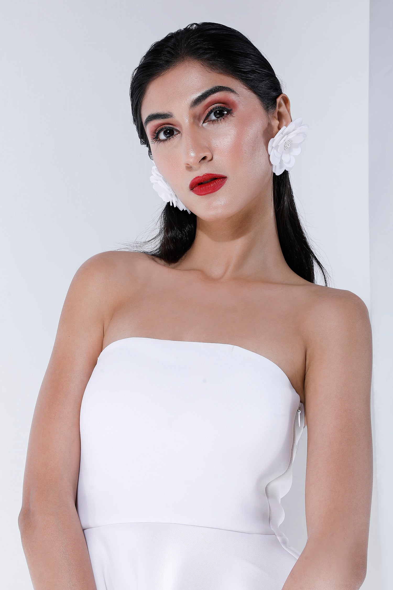 Featuring a strapless, fit and flare skater dress which is custom made for you, as per your height and unique measurements.