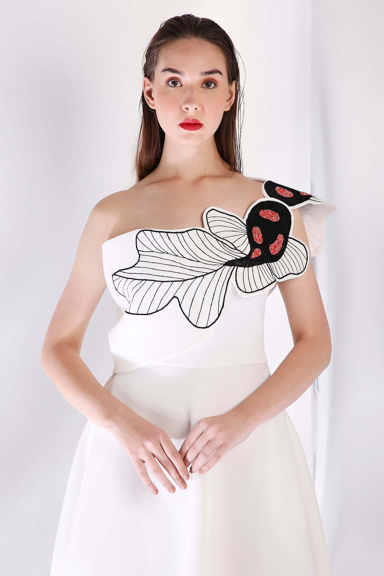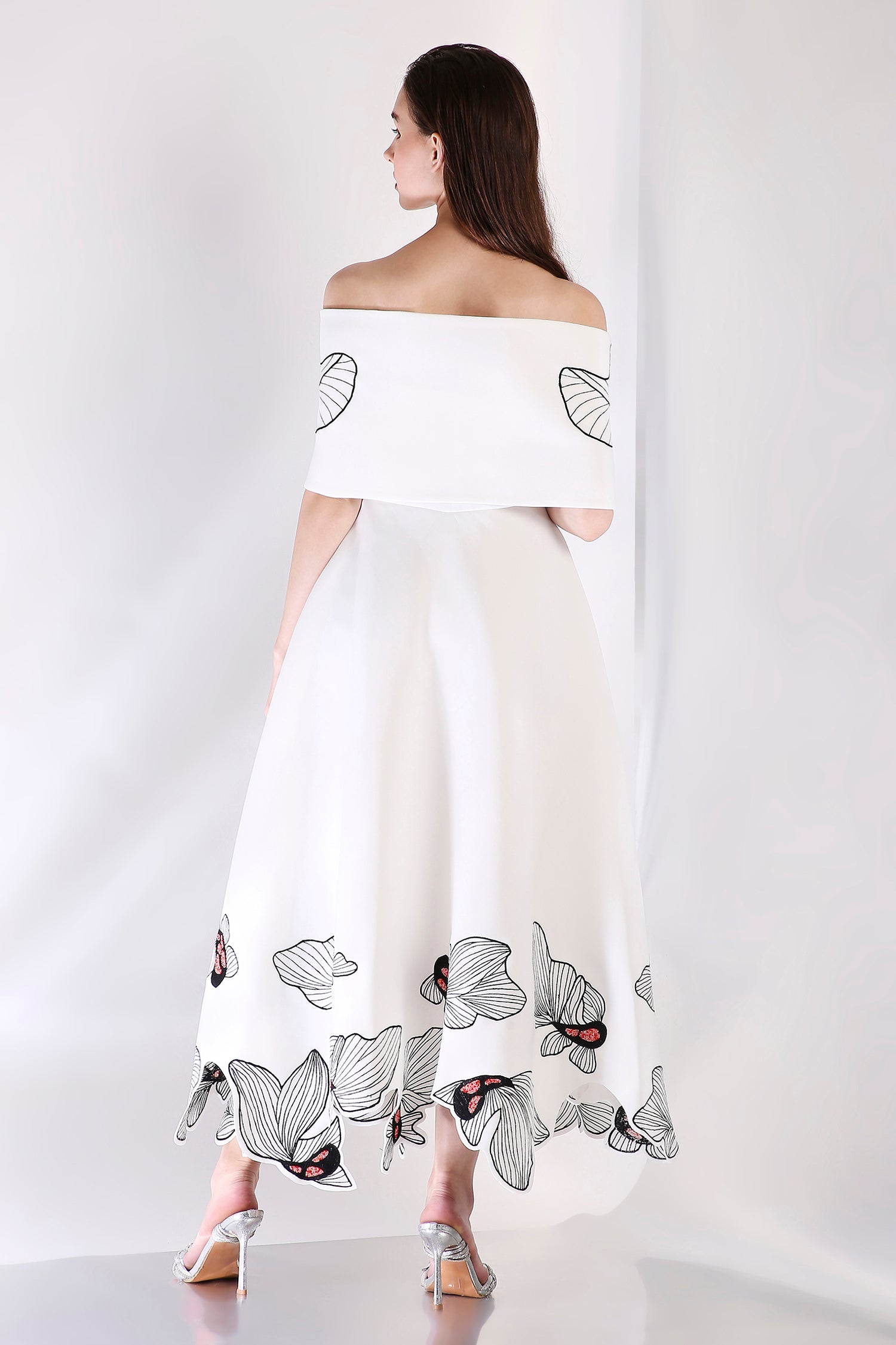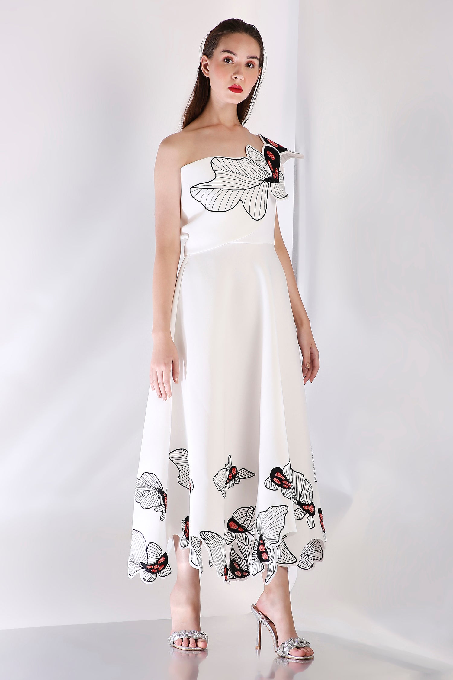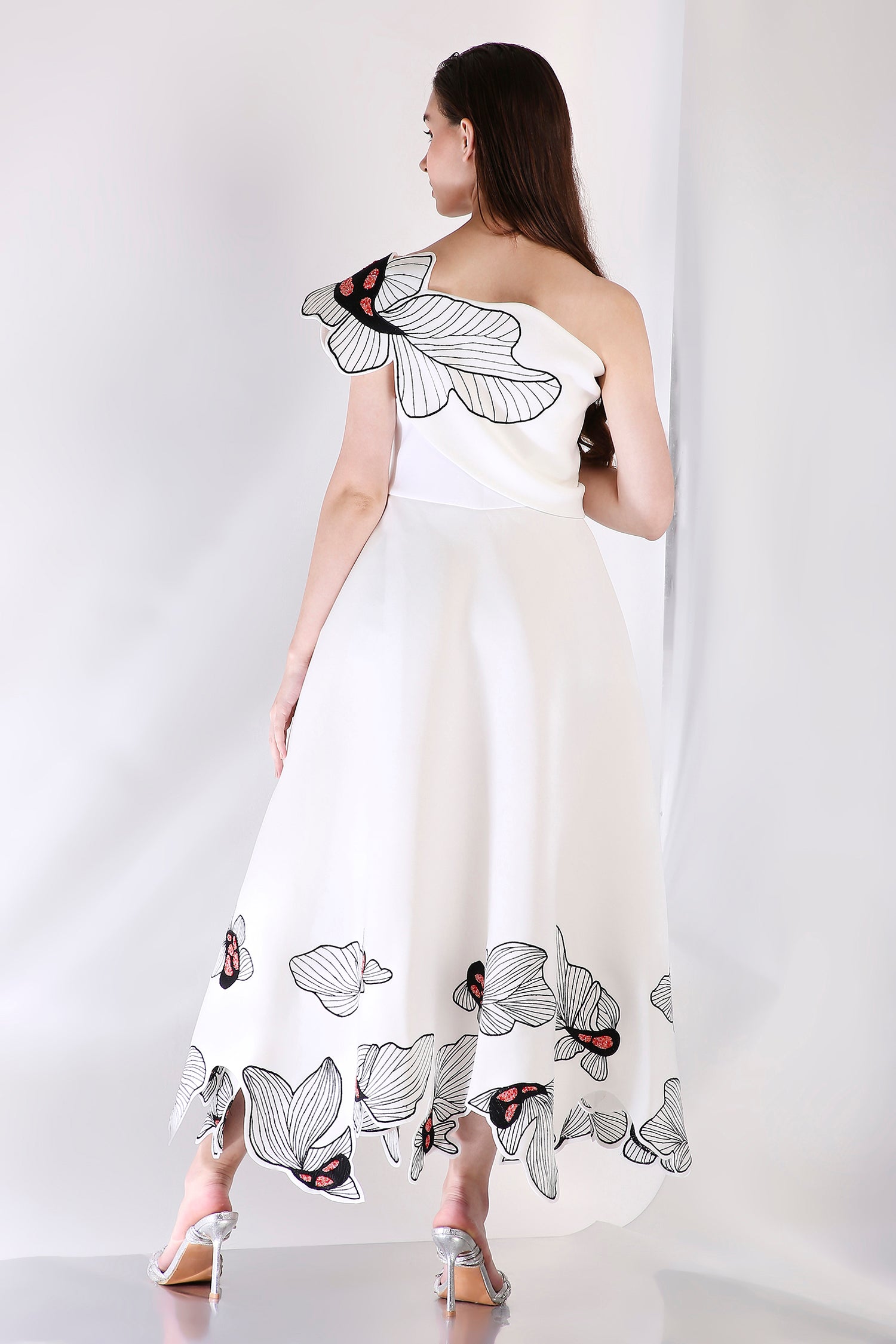 The Koia Fish dress embodies elegance with its intricately hand embroidered design, emphasised with beads. The embroidery paired with hand work elevate the look of this dress.