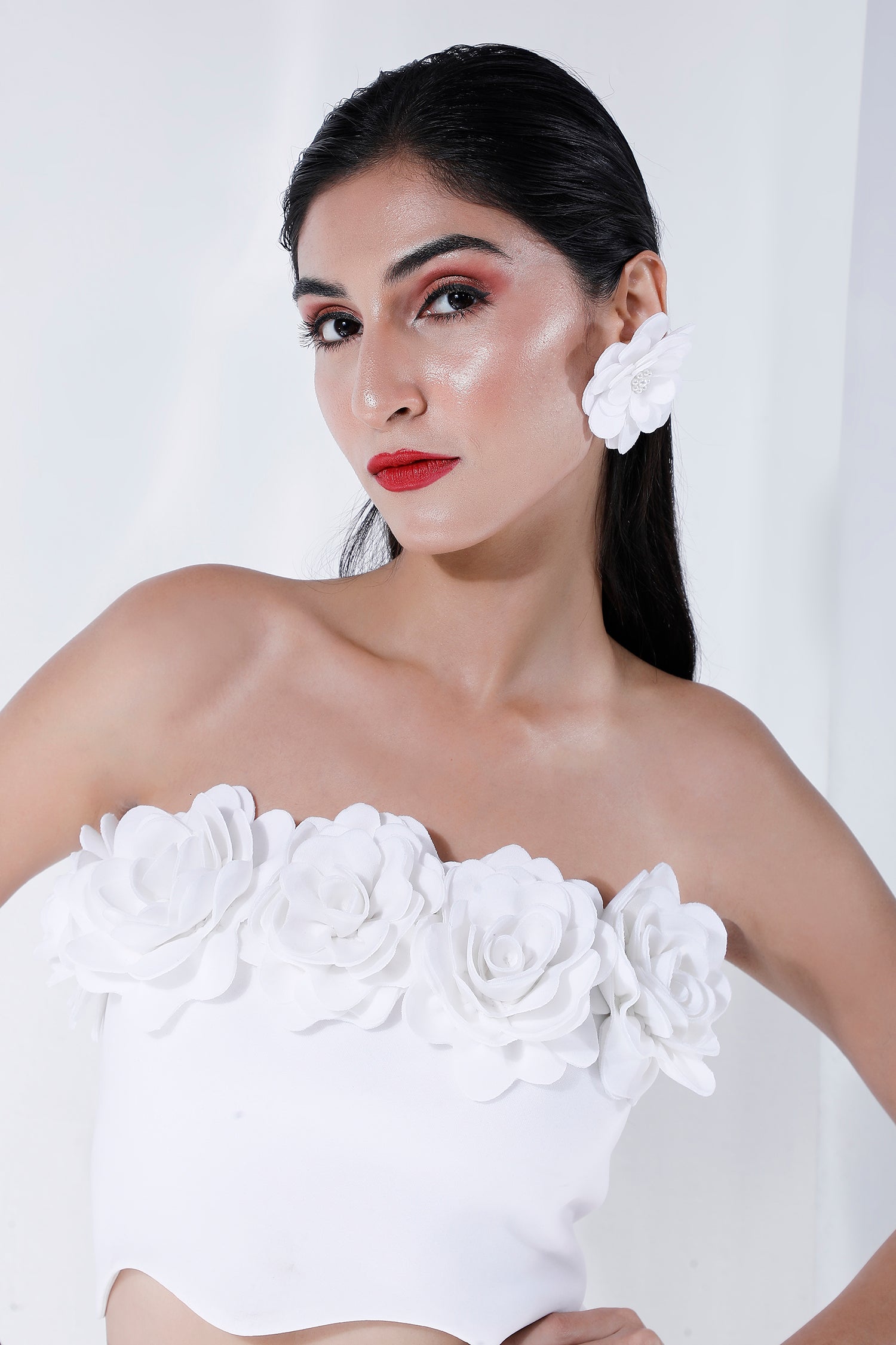 Featuring a crop and skirt set, custom made for you as per your height, length preference and unique measurements.