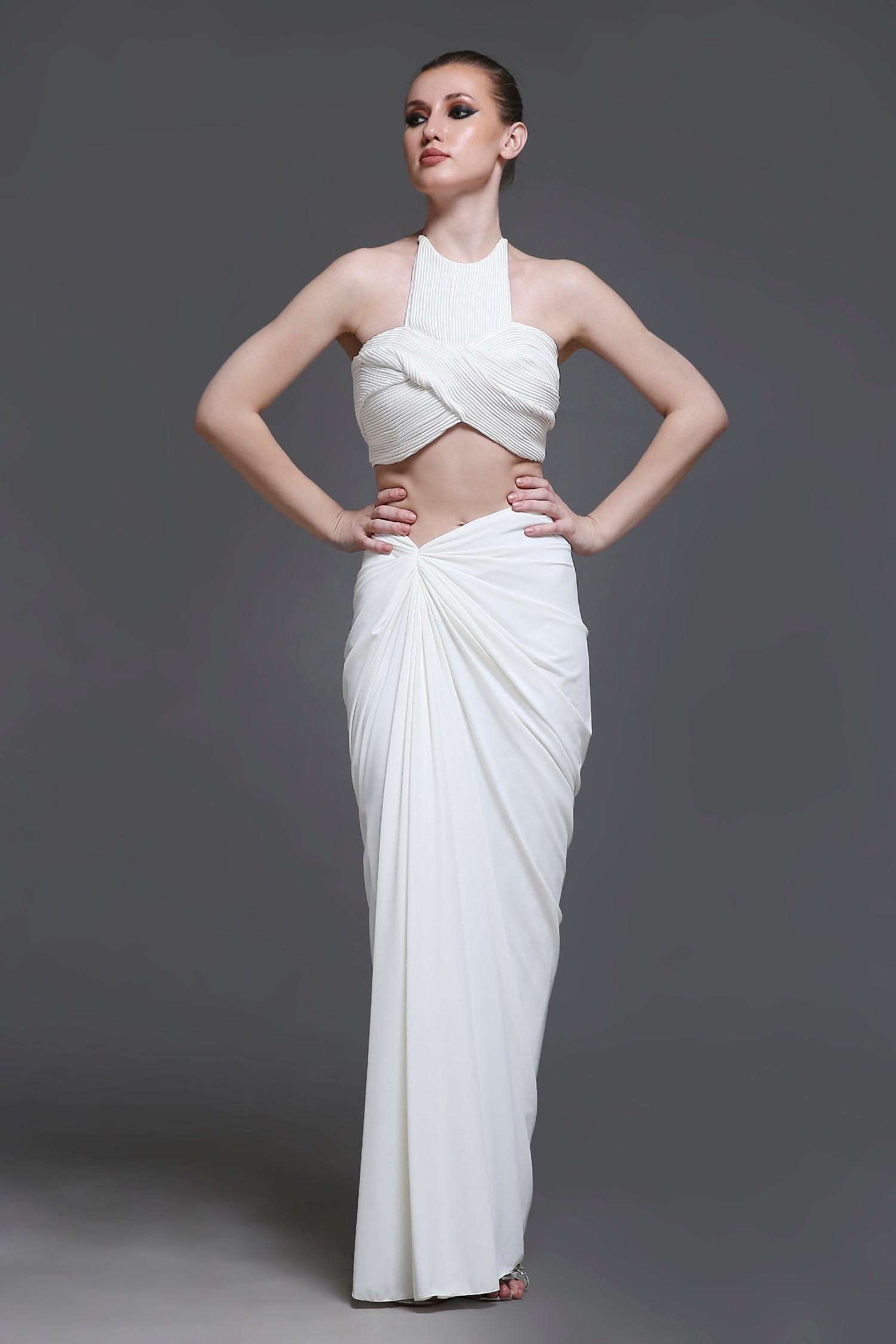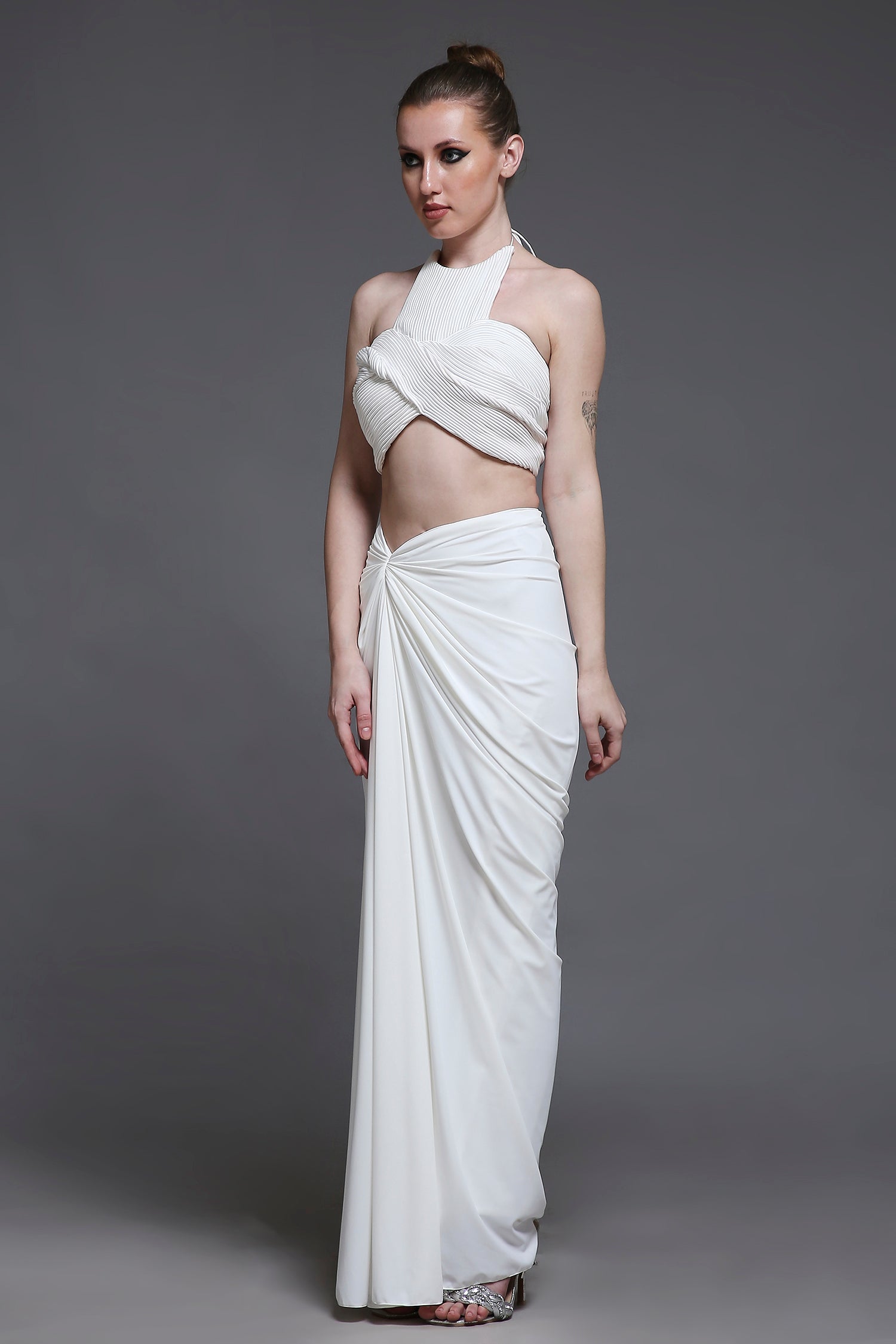 Khushnaz Turner in Blanc Georgia Set + Drape