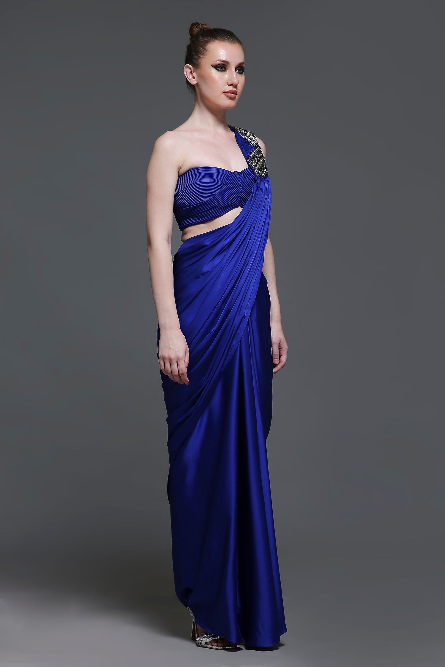 Our Charles Set features a short cord-detail bustier corset with a tie-up back for a perfectly tailored fit. The accompanying draped skirt adds fluidity and movement, creating a balanced, flattering silhouette. Completing the look is a detachable drape, adorned with exquisite hand-embroidered detailing, adding a touch of luxury and elegance. This striking ensemble is the perfect choice for making a statement at any special occasion.