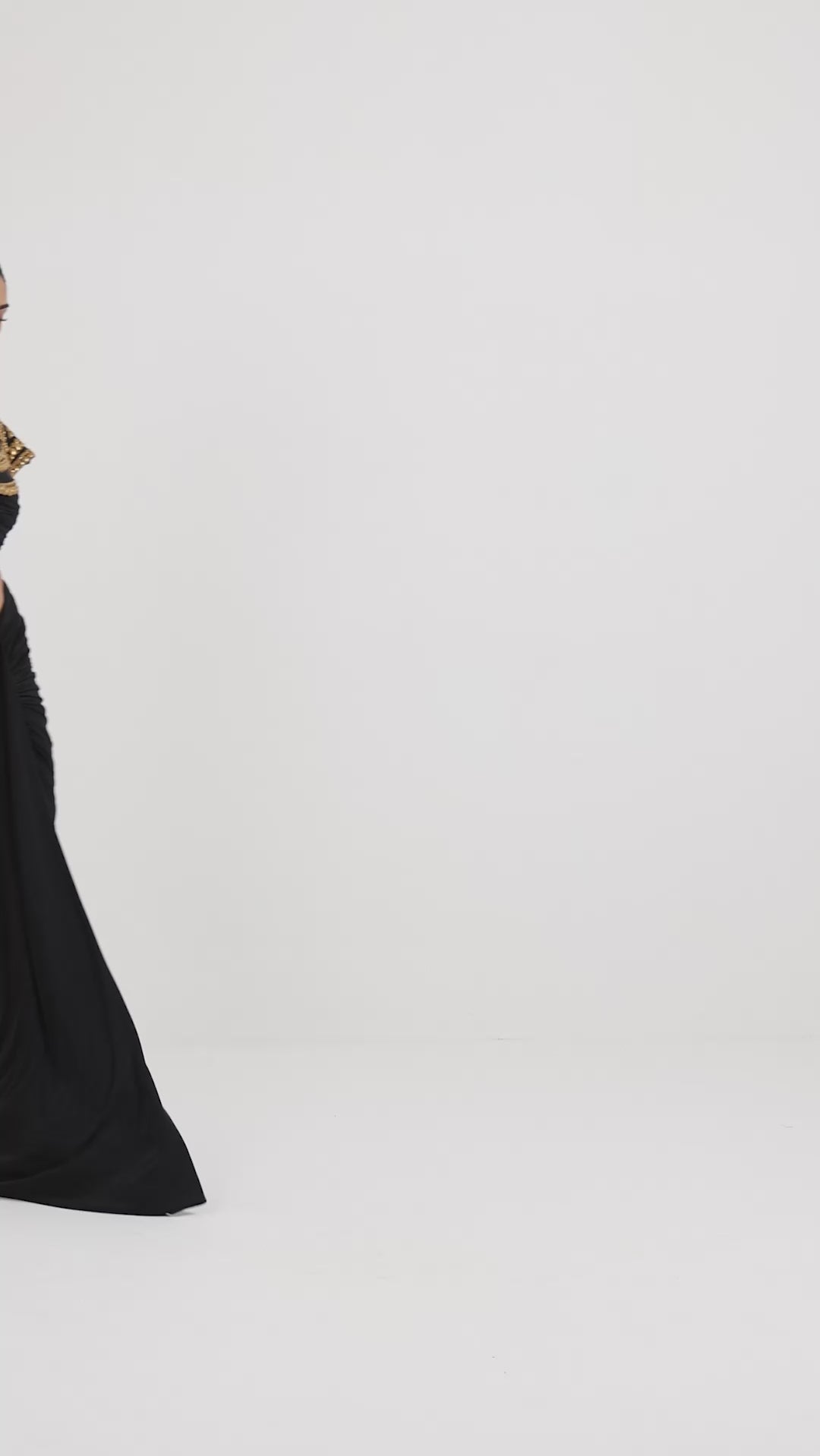 This ensemble blends fluid draping with strong, couture-like ornamentation, making it perfect for occasions where you want your presence to feel powerful and unforgettable.