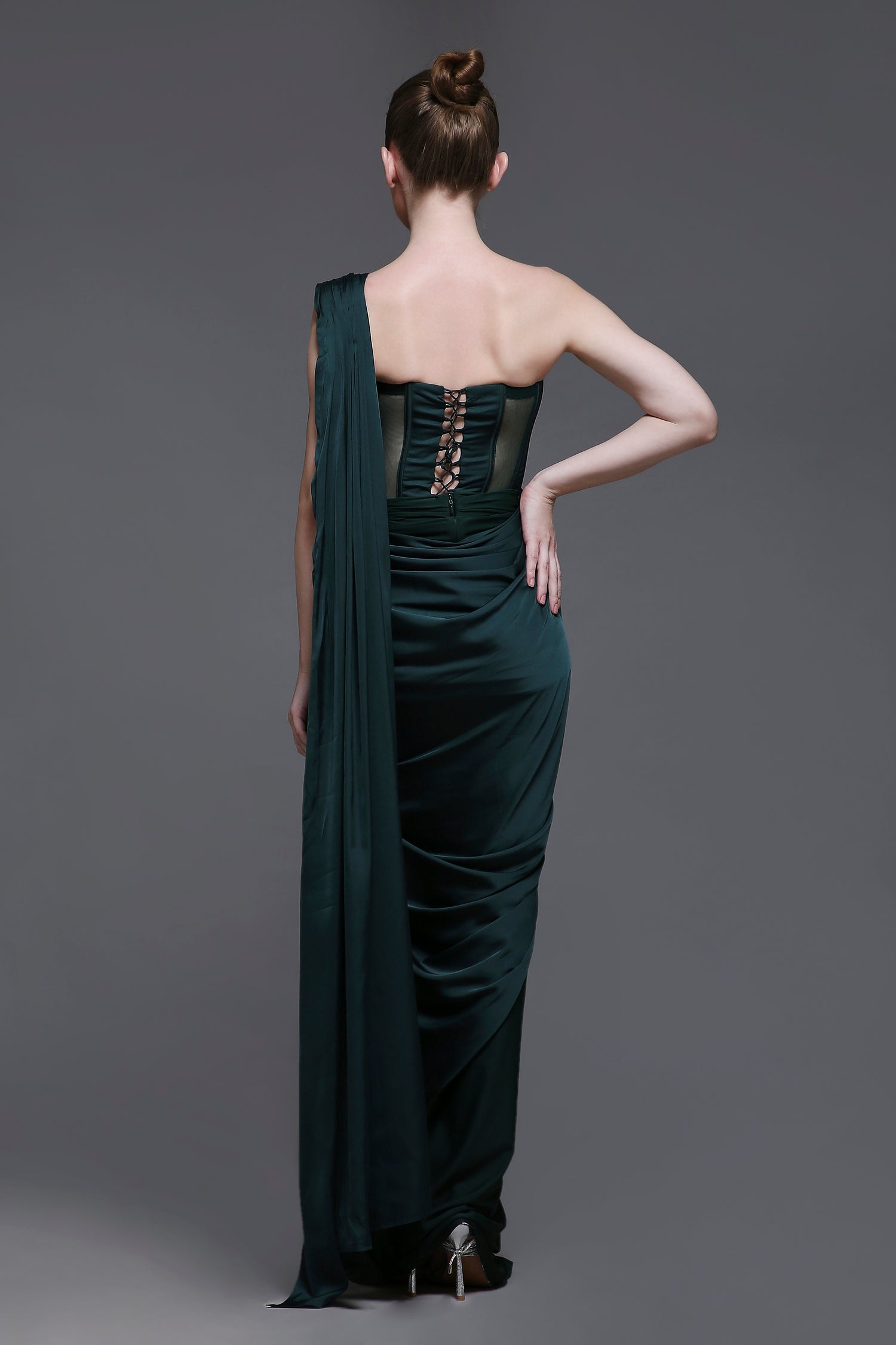 Our Georgia Set combines elegance and structure, featuring a corset with detailed cups, mesh panels, and a tie-up back for a customizable fit. The matching fitted draped skirt is enhanced with subtle ruching for a flattering silhouette. The set is further elevated by a detachable drape with intricate embroidered detailing, adding a touch of luxury and sophistication. Perfect for making a statement at any special occasion.
