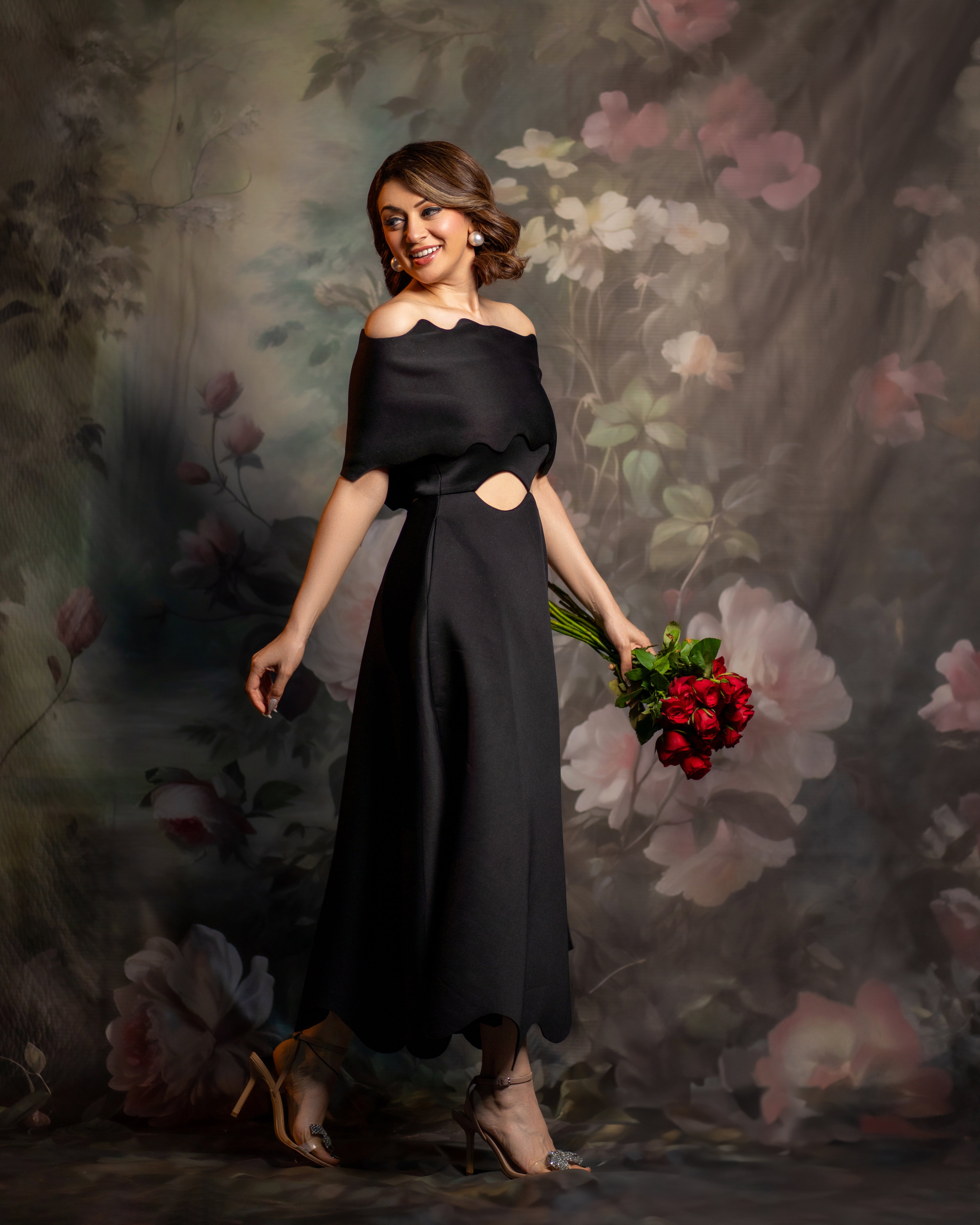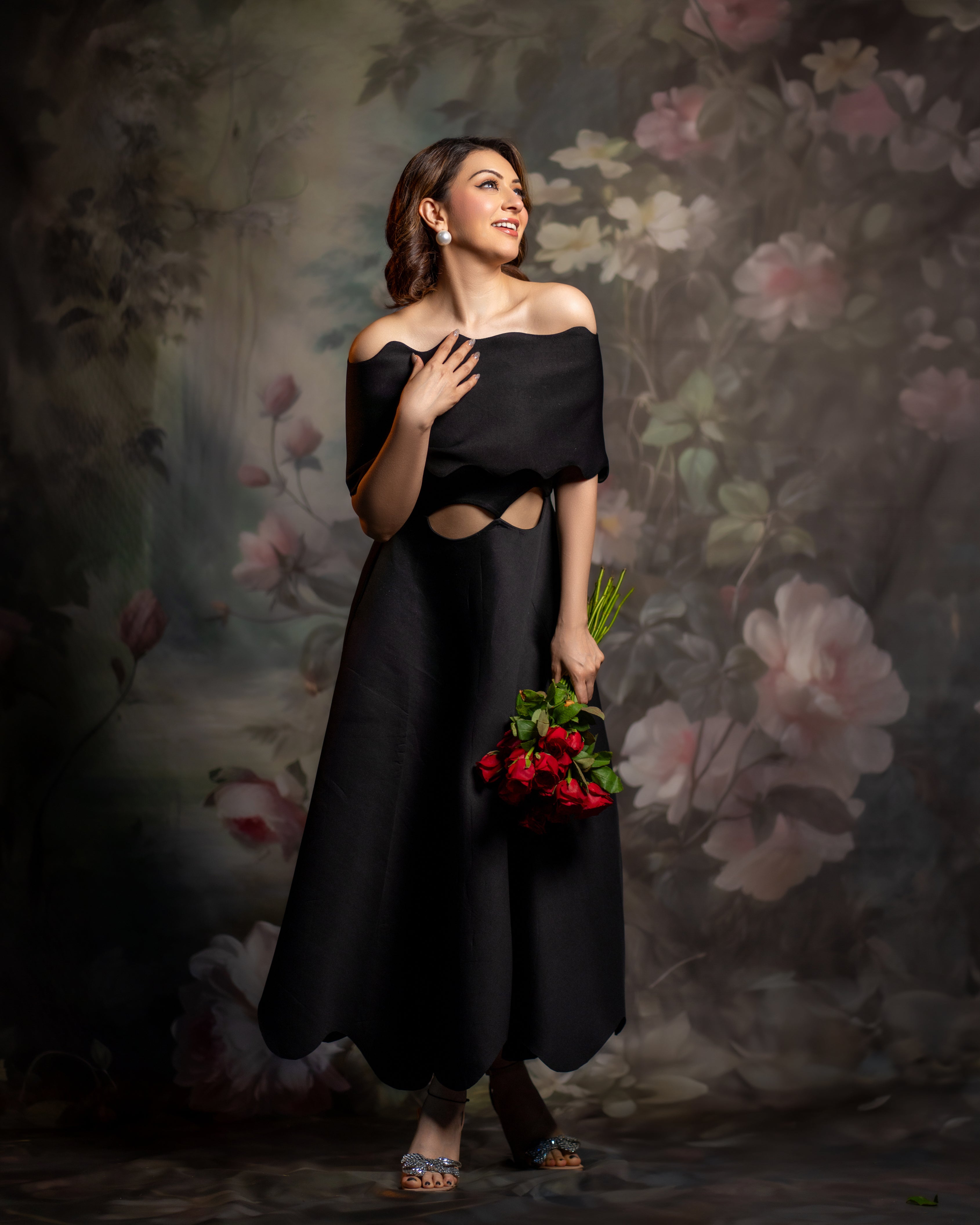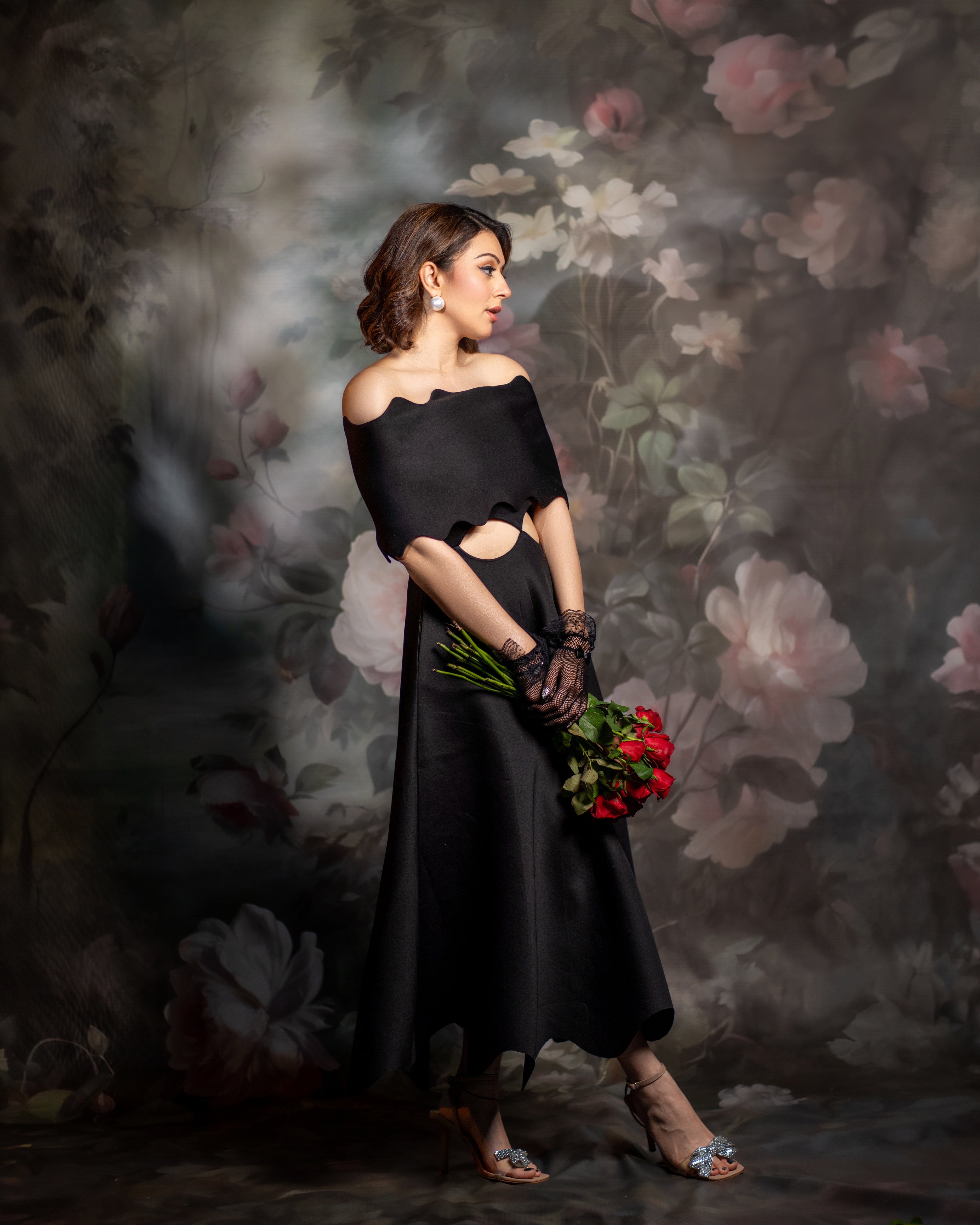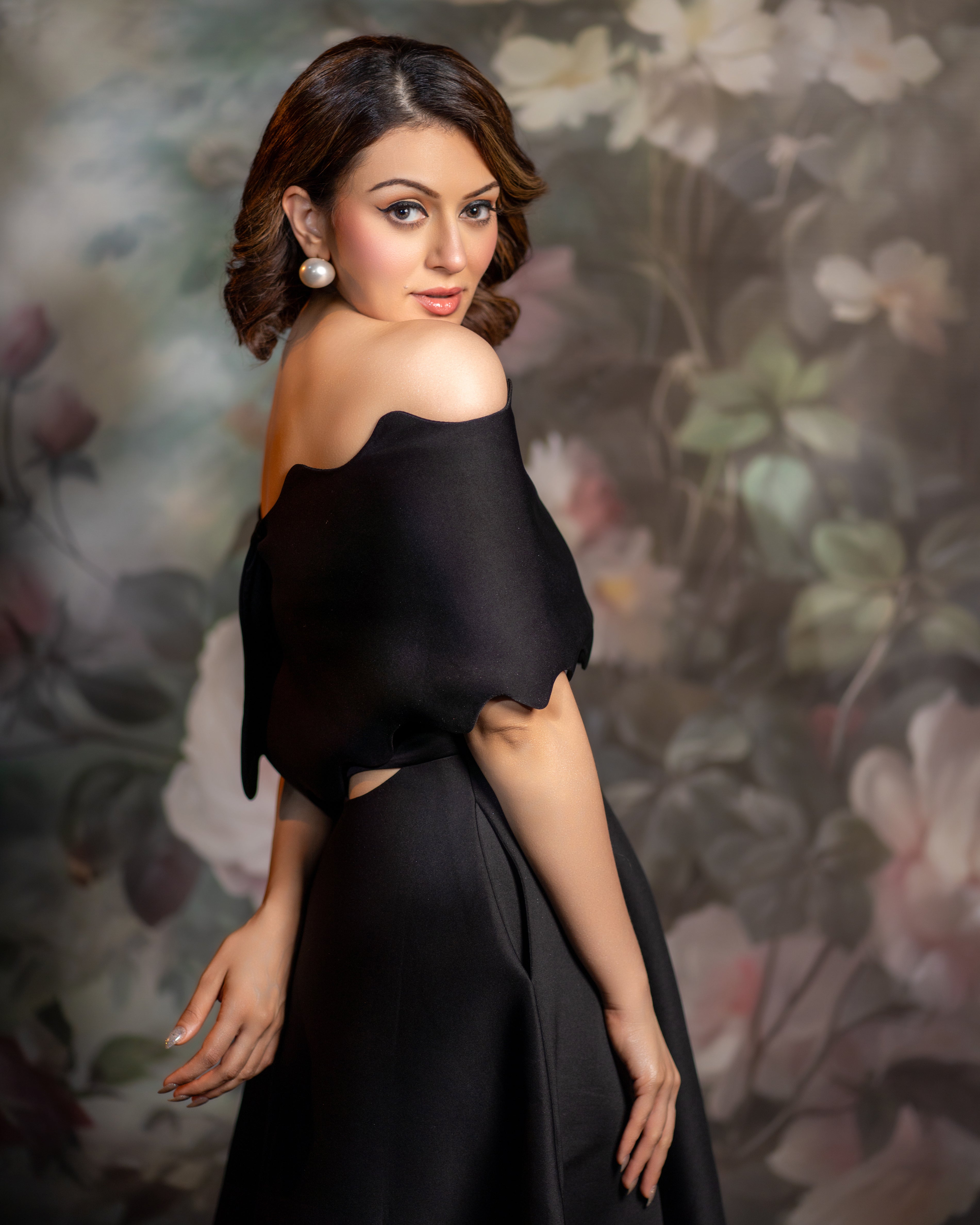 Hansika looks lovely in Francesca - a strapless dress with cut-outs, pockets and a scalloped hem.