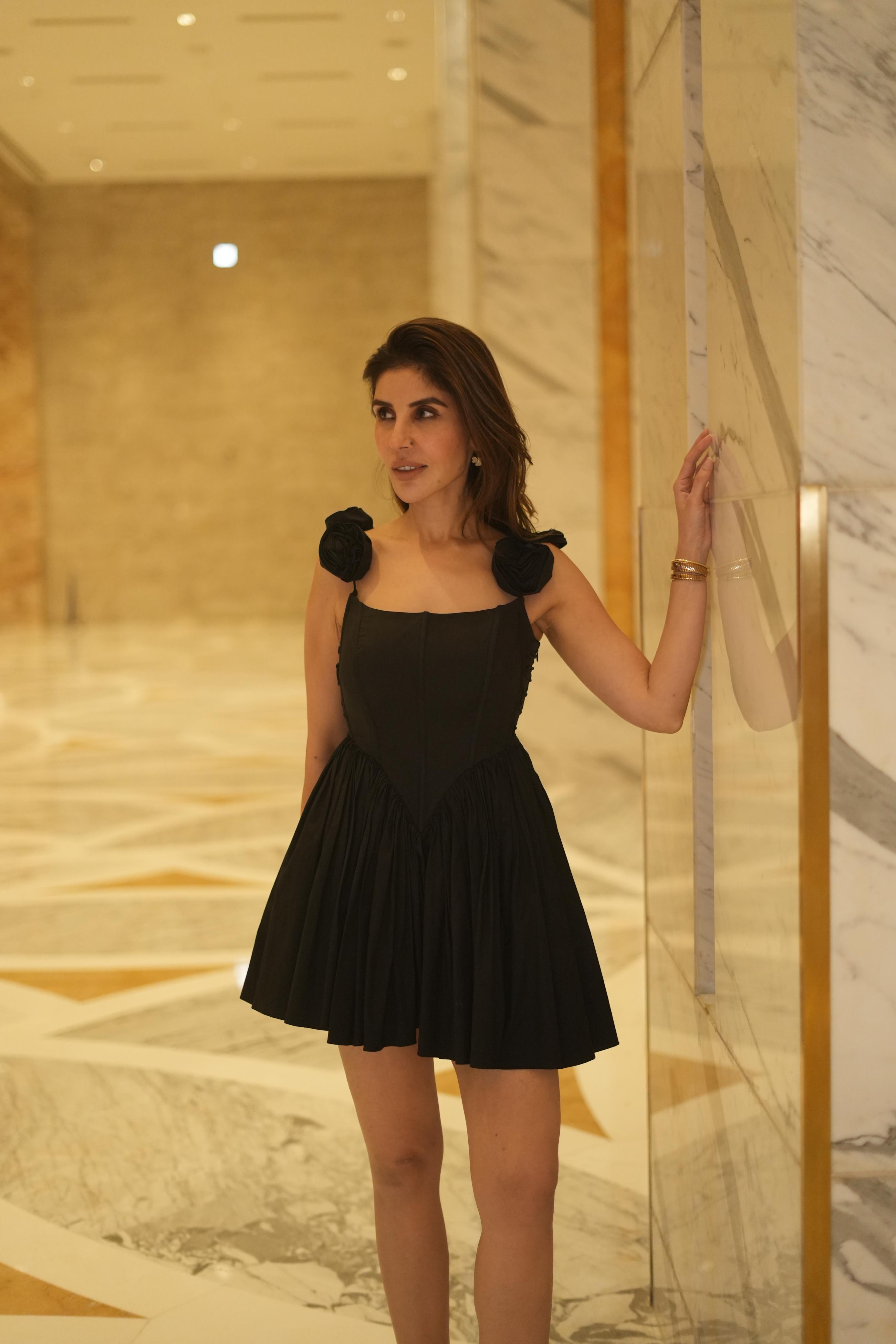 The straps are detachable, comprising of handmade flowers that elevate the overall look of the fit.